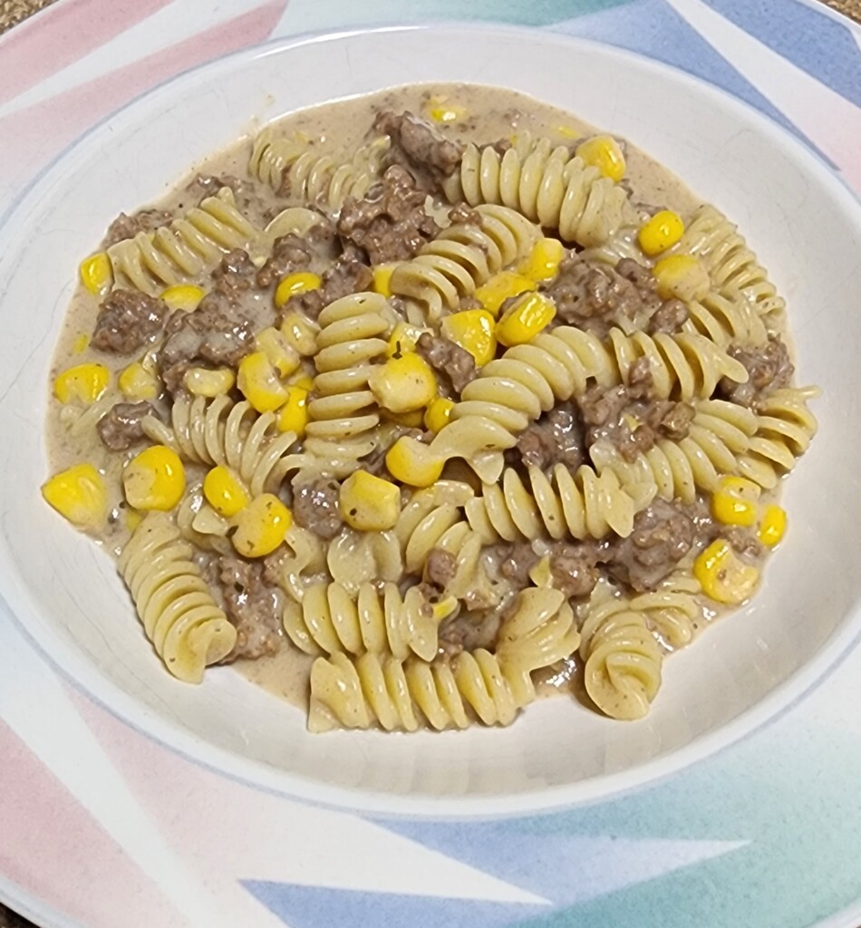 This is pure comfort food - beef, corn, and pasta in a creamy sauce with a touch of Ranch flavor. A great choice for cooler evenings.